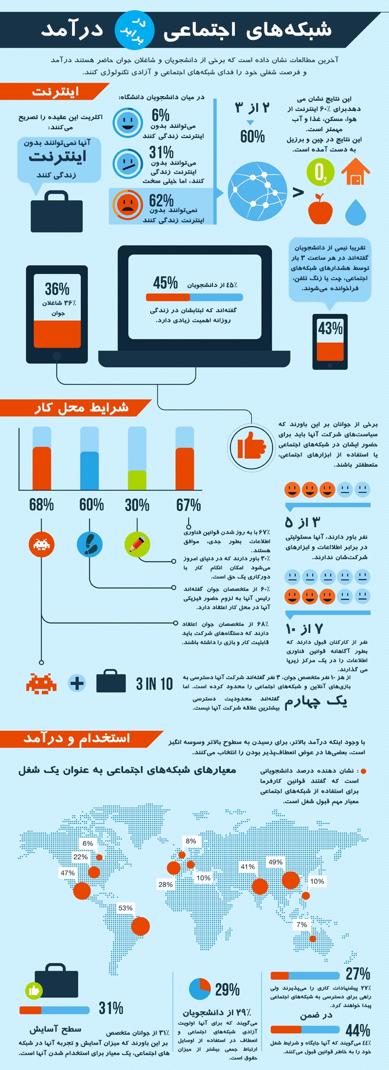 اینفوگرافی حضور در شبکه های اجتماعی در ایران و جهان