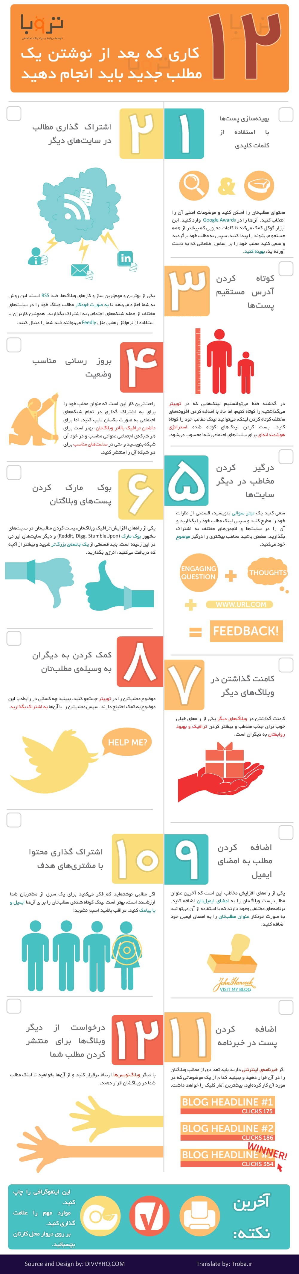 اینفوگرافی دوازده کار بعد از نوشتن مطلب جدید